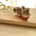 リピートです。今度の作品も大変可愛く、ぬくもりを感じます。木彫りですので軽やかなのも良いですし、毛並みがまるで本物の猫のように見えます! 付けない時は前回購入したブローチとセットで飾ります。 今回もありがとうございました!