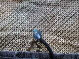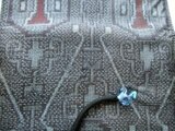 中綿を入れ、正絹の黒の着物で作ったループを付け、ループの先に、トンボ玉とトルコ石を付けています。