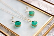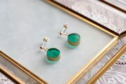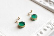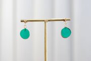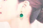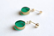 鮮やかなグリーンに側面のゴールドが映えるピアス。