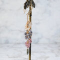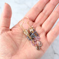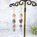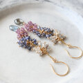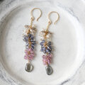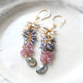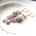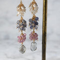 ピンクスピネル、アイオライト、グレームーンストーンを小さな房状にあしらい、ムスカリやヒヤシンスなど、少しくすんだ春の花々をイメージして仕立てました。