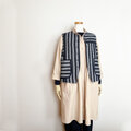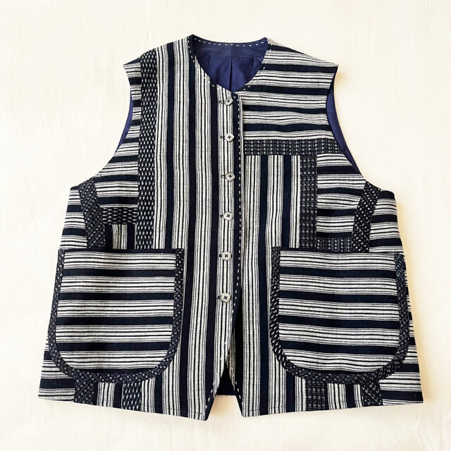本藍の縞着物地と書生絣をコラージュして