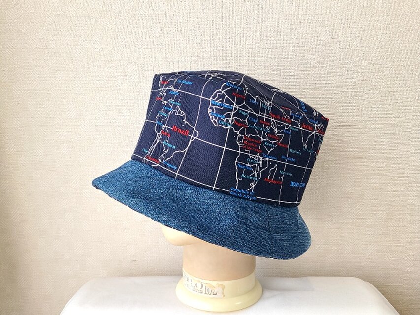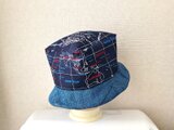 魅せる☆一点物!!あら不思議♪四角いトップのハット大人カジュアル~地図プリント&デニム