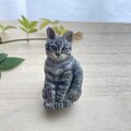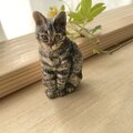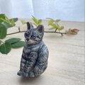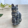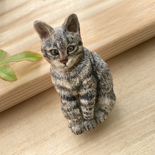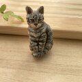 木彫りの「お座りキジトラ猫」のブローチ
