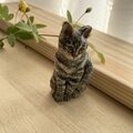 リピートです。今度の作品も大変可愛く、ぬくもりを感じます。木彫りですので軽やかなのも良いですし、毛並みがまるで本物の猫のように見えます! 付けない時は前回購入したブローチとセットで飾ります。 今回もありがとうございました!