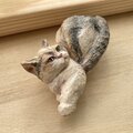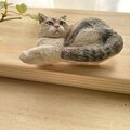 リピートです。今度の作品も大変可愛く、ぬくもりを感じます。木彫りですので軽やかなのも良いですし、毛並みがまるで本物の猫のように見えます! 付けない時は前回購入したブローチとセットで飾ります。 今回もありがとうございました!