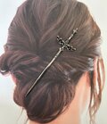 アンティークシルバースタイルのレリーフ模様が美しい、剣型の簪です。
