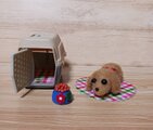 つぶらな瞳が愛らしい子犬は、キャリーケースに入れて持ち運ぶこともできます。キャリーケースにはマットも付属しており、細部までこだわって作られています。