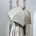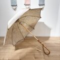 希少な証紙付き手織り白大島の一反から生まれた、Aラインワンピースと日傘のセットです。