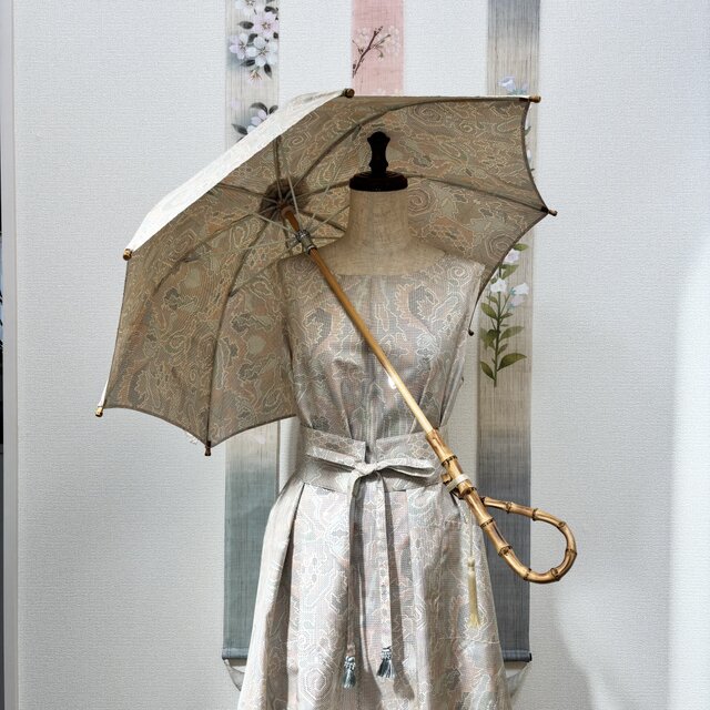 同じ反物から仕立てた日傘は、装い全体に統一感と品格を添えてくれます。
