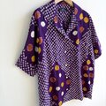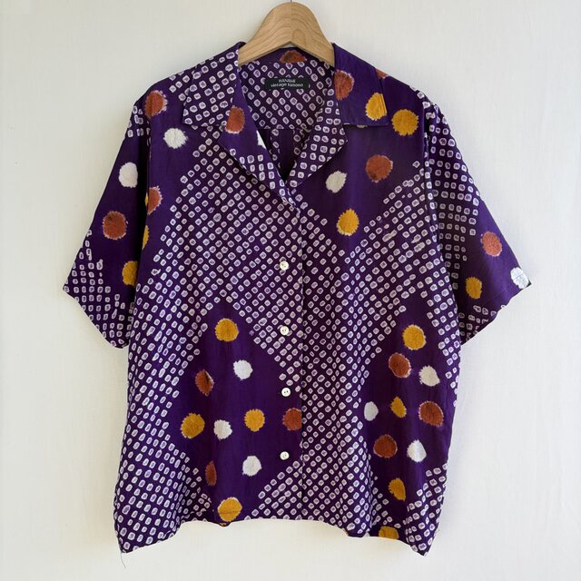 紫地に絞り文様、和モダンなアロハシャツになりました。