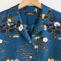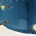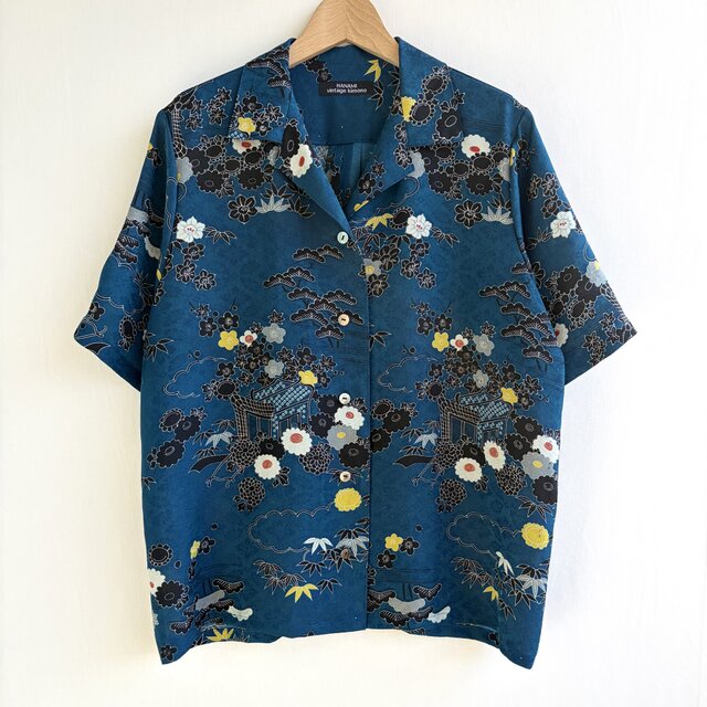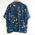 藍色の地に御所車と吉祥草花、古典柄の素敵なアロハシャツになりました。