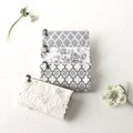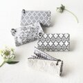 モノトーンのコットン生地で仕立てた「ひらく、仕分けポーチ」です。