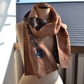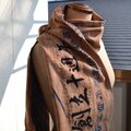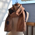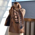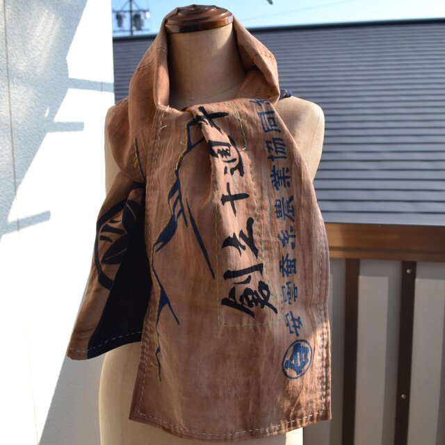 懐かしい絵柄の手ぬぐいを柿渋染めをして、マフラーを作りました