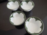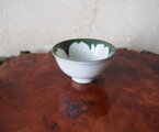 盃の見込みに抹茶色の縁取りに桜の紋様です。
