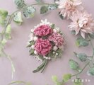 くすみピンクのカーネーションとヒペリカムの実は刺繡糸で編んでおります。