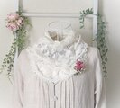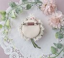 アンティーク風のモチーフレースにカーネーションのお花やヒペリカムの実を7粒のパールビーズで束ねてちいさな花束のようにお仕立てしました。