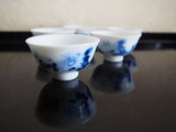 染付盃ぼかし菊の花紋様5客 小さめ盃 酒器