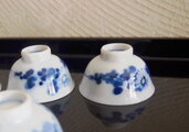 染付ぼかし菊の花紋様の小さめな盃です。