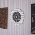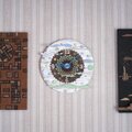 時計盤には古民家の廃材など薄い板、窓枠などを利用して新しい感覚に作り変えました。