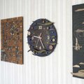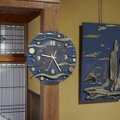 時計盤には古民家の廃材など薄い板、窓枠などを利用して新しい感覚に作り変えました。