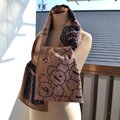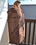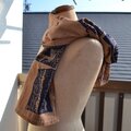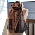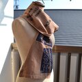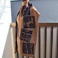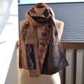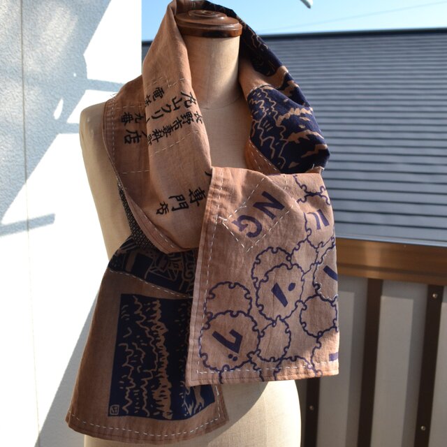 懐かしい絵柄の手ぬぐいを柿渋染めをして、マフラーを作りました