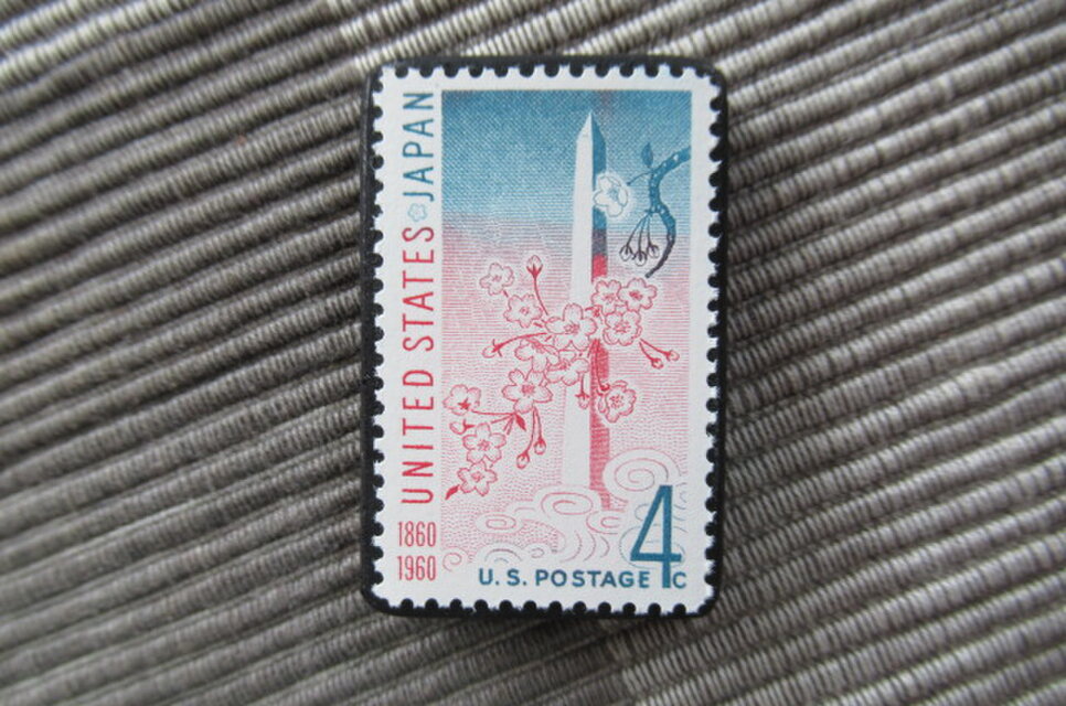 アメリカ1960年 ワシントン記念さくら切手ブローチ 10898