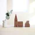 とんがり屋根の教会と、煙突のある三角屋根のお家、2点セットでのお届けとなります。
