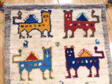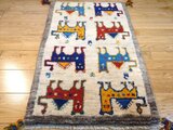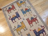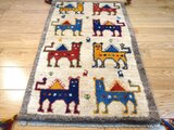 イラン・シラーズ地方の遊牧民(カシュガイ族)が、羊やテント、動物や自然等をモチーフに、自分のインスピレーションで織り描く素朴な手織り絨毯です。手作業のため、基本的に、世界に一枚しかない一点ものです。