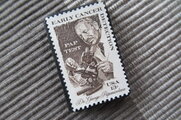 切手の中のお花を見て春の到来を待っているところです。いつも素敵なブローチをありがとうございます。