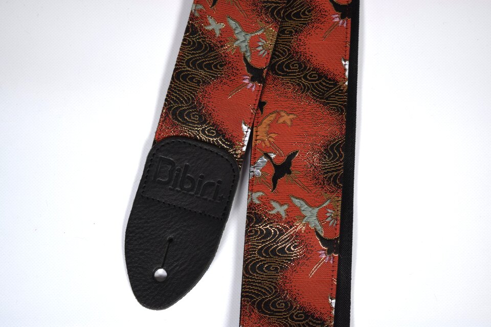 鳥と流線 帆布ギターストラップ 京都金襴