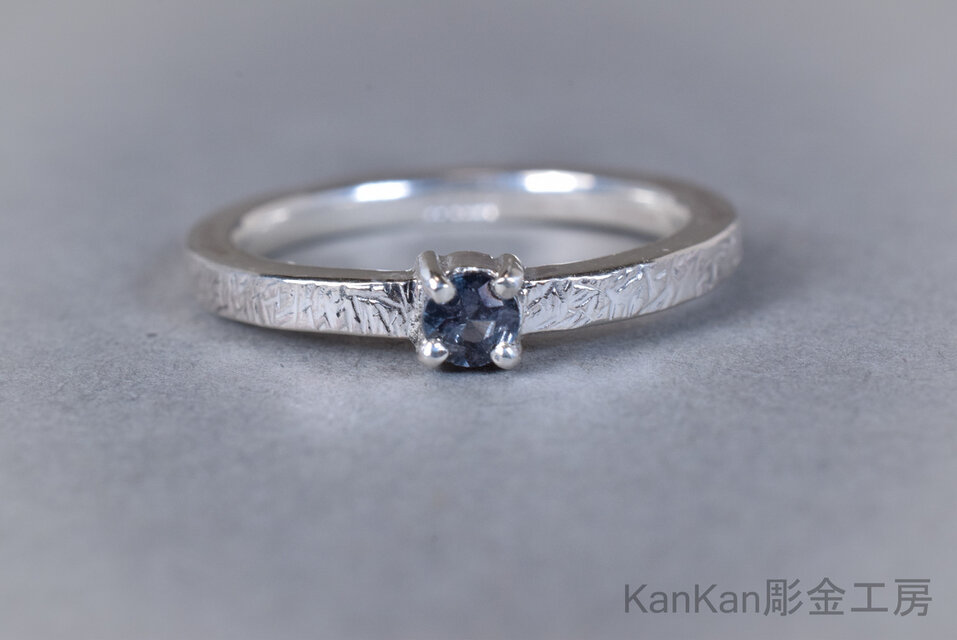 リングの腕には、タガネによる荒らし仕上げを全周に施しました。