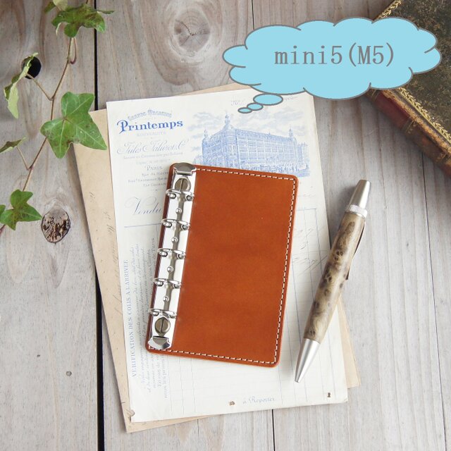 「リフィルパッド」タイプのフラット&コンパクトに使えるミニ5穴(マイクロ5)のシステム手帳です。(受注後の製作になります)