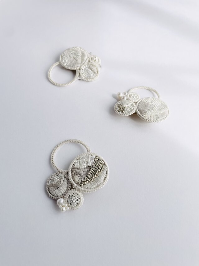 【2個セット 縁ーenー】手刺繍 軽いつけ心地のブローチ LホワイトとSシルバーb012作品が届きました。繊細な刺繡とガラスビーズ、思っていた通りステキです。 いろいろな組み合わせができそうで、楽しみです。 ありがとうございました。