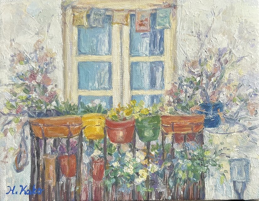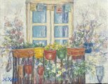 窓辺の風景(油絵0号、原画、スペイン)
