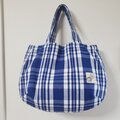 青色のマドラスチェック柄でとても素敵なバッグです。