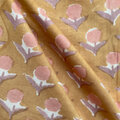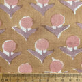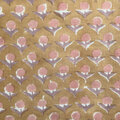 インド ブロックプリント生地 [50cm単位] サンガネリ デイジー on オークルブラウン 花 IF0489