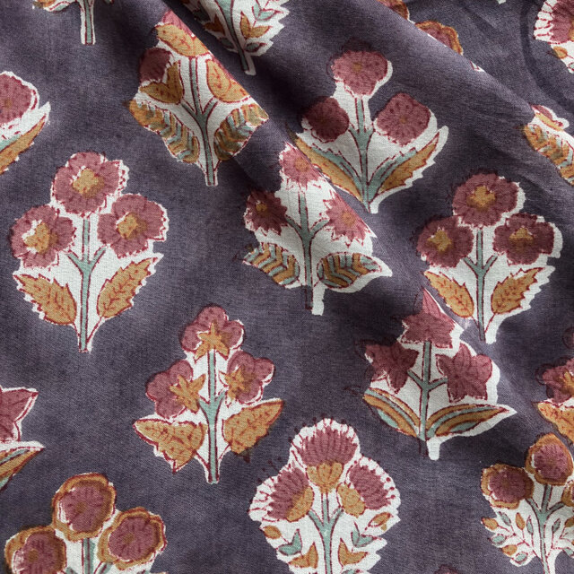 インド ブロックプリント生地 [50cm単位] サンガネリ クラシカルフラワー onパープル地 布 IF0500