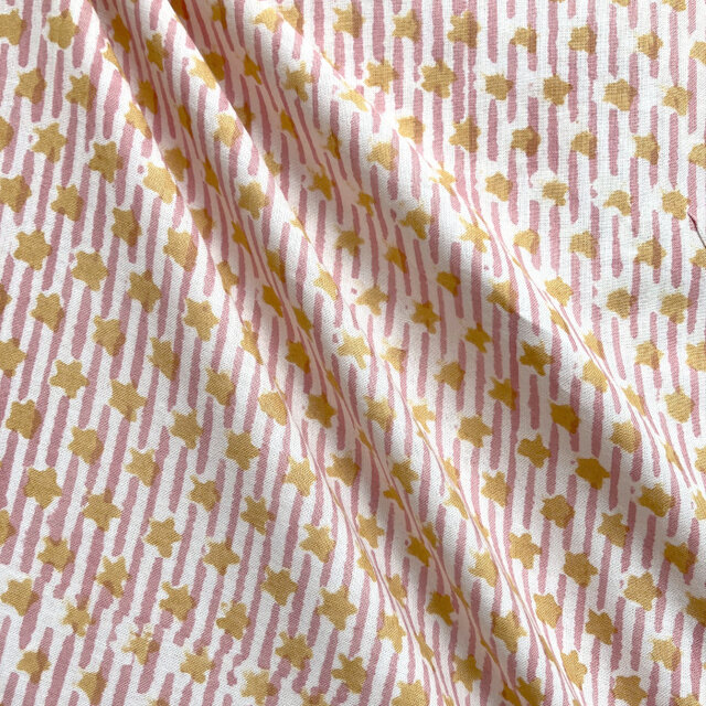 インド ブロックプリント生地 [50cm単位切り売り] サンガネリ 星とストライプ ピンク スター PP IF0490