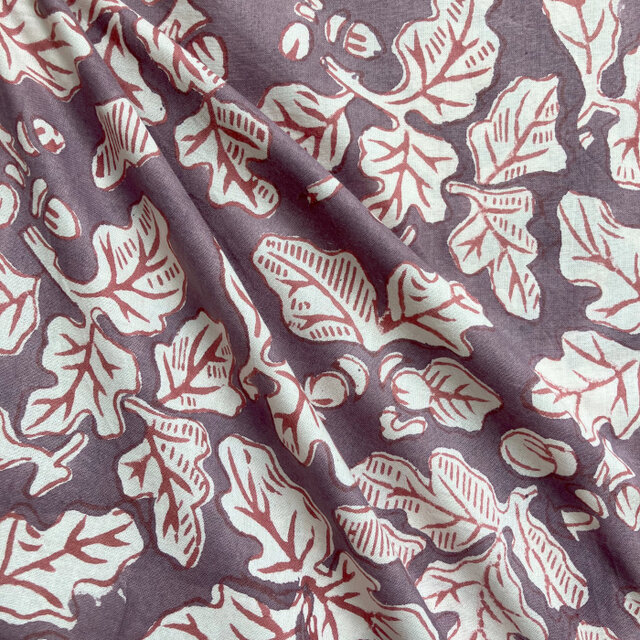 インド ブロックプリント生地 [50cm単位] サンガネリ どんぐり パープル地 PP 木の実 秋