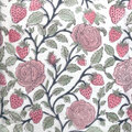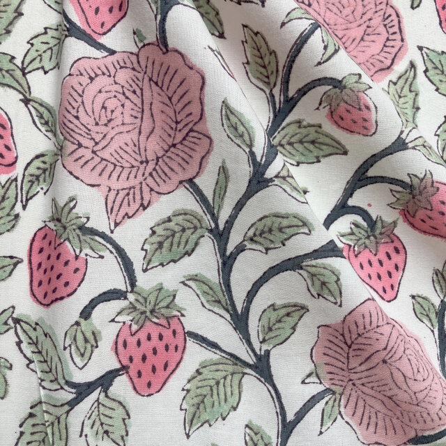 インド ブロックプリント生地 [50cm単位] サンガネリ バラとイチゴ ローズ ストロベリーフラワー IF0505