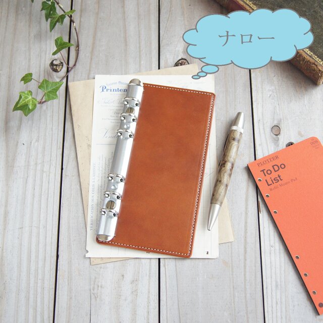 リングの部分に革パーツを入れてぐるっと1周するタイプで手帳をしっかりとホールドします。