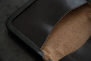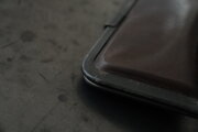 高見澤さんは主に国内各地のジビエ(野生獣)の革を用いていますが、厚みが本型に適した革を選んでいるため、こちらはジビエ革ではなく牛革です。