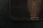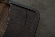 鉄のフレーム、真鍮の留め具、共に燻し加工がされていますので、メッキ加工とは違い、革と共に経年変化を楽しめます。少しずつ、それぞれの金属の色が出てきます。