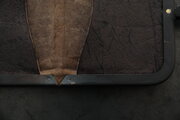 本体部分は立体成型ならではの革の角や凹凸の表情が、金具との組み合わせで際立ちます。堅さも柔らかさも感じさせるバランス。