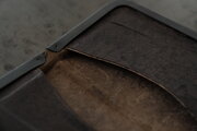 革は、高見澤さんは主に国内各地のジビエ(野生獣)の革を用いていますが、こちらはジビエ革ではなく馬革です。ホースバット(HORSE BUTT)は、馬の臀部(お尻)の革です。コードバンも同じ部位の革ですが、コードバンよりも上の層にある革です。繊維密度が高く、しなやかさもあると言われます。