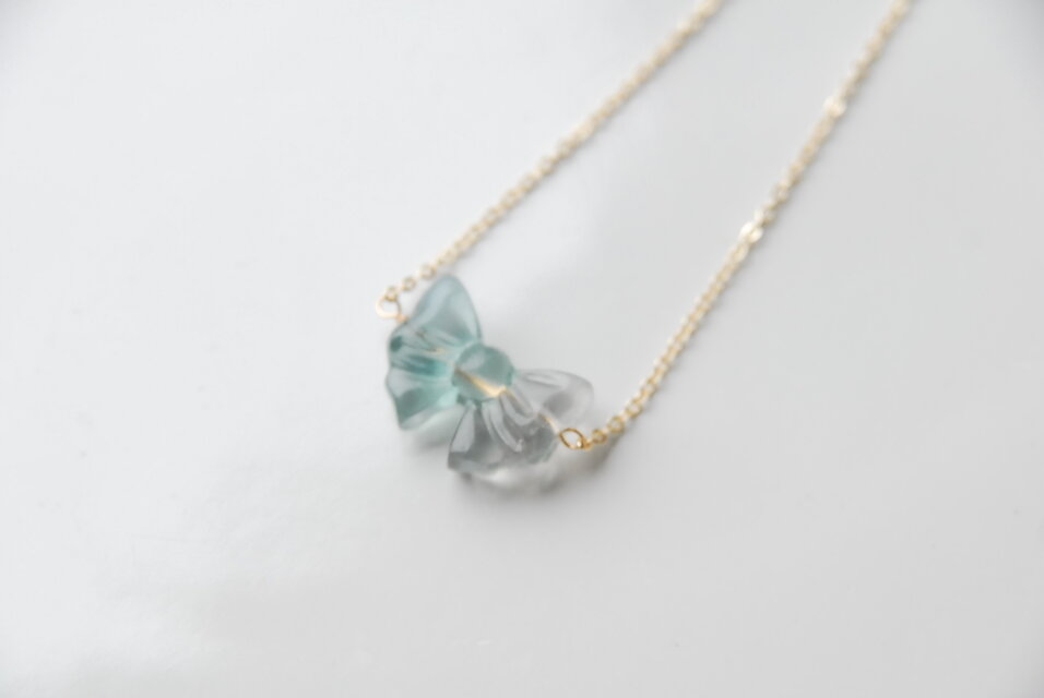 可愛らしいリボンの形のフローライトを使ったネックレスです