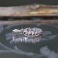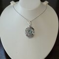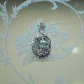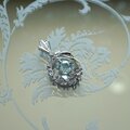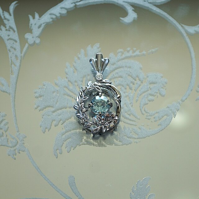 ラウンド型のアクアマリンを使用し、シルバーでボタニカル調のペンダントを製作いたしました。