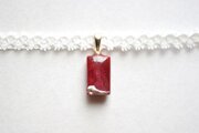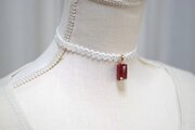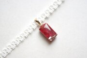 鮮やかな深紅に微細なラメが輝くうっとりするほど美しいレジンを、サテンリボンにタティングレースで装飾を施したチョーカーに仕上げました。