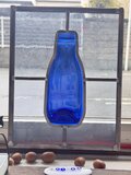 爽やかブルーの瓶はフュージングしたもので、上に貼っているミルフィオリプレートは取り外し可能です。