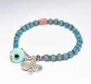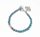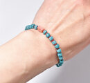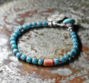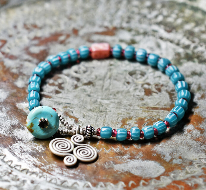 ストライプジャワビーズと金赤ビーズ、ピンクダイスビーズ、カレンシルバーのブレス(ターコイズ留め金)